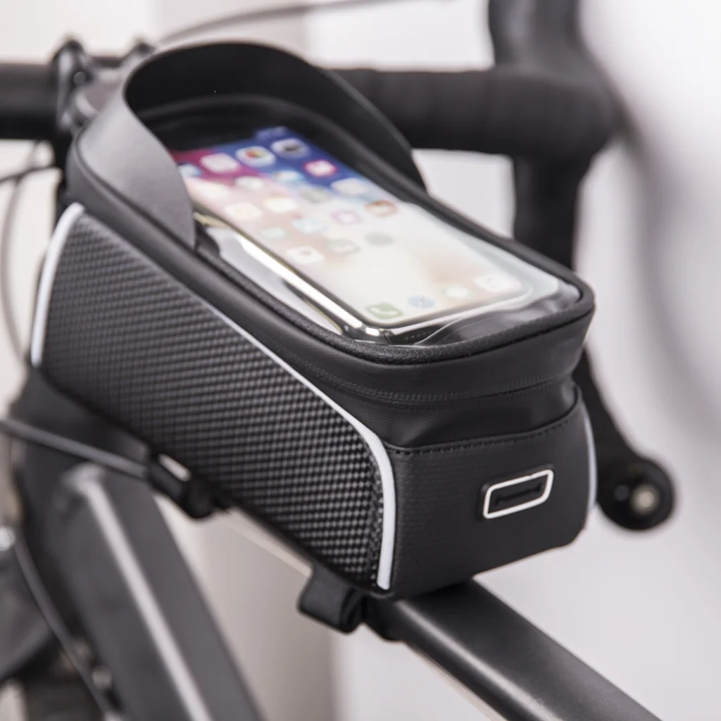 A vízálló kerékpártáska lehetővé teszi, hogy kényelmesen használja telefonját vagy GPS-ét biciklizés közben, még esős időben is. A táska rögzítése gyors és egyszerű - nincs szükség szerszámokra. Az érintésérzékeny fóliának köszönhetően a képernyőt anélkül is használhatja, hogy kivenné a telefont a táskából. A termék nem csak kerékpár kormányára rögzíthető, hanem babakocsira, futópadra, valamint motor- vagy robogó kormányára is, a biztonságot pedig a fényvisszaverő elemek biztosítják. A telefon számára kialakított rész mérete 17,5 x 9 cm, az ablaké pedig 9 x 16,5 cm.