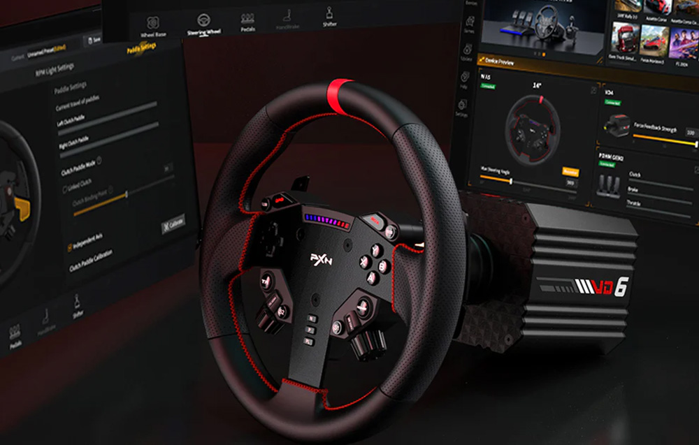 A PXN VD6 egy fejlett, közvetlen meghajtású kormánykerékalap, amely 6 Nm állandó nyomatékot és 7 Nm csúcsnyomatékot kínál. Az alacsony tehetetlenségi nyomatéknak és a többsebességes szervomotornak köszönhetően villámgyors reakciókat, erősebb visszajelzést és maximálisan valósághű vezetési élményt biztosít. A 24 bites kódolóval, a dedikált Sense+ algoritmussal és a többmagos PXN processzorral kombinálva a VD6 segítségével az útfelület és a jármű dinamikájának minden részletét érezheted - akárcsak egy valódi versenypályán.