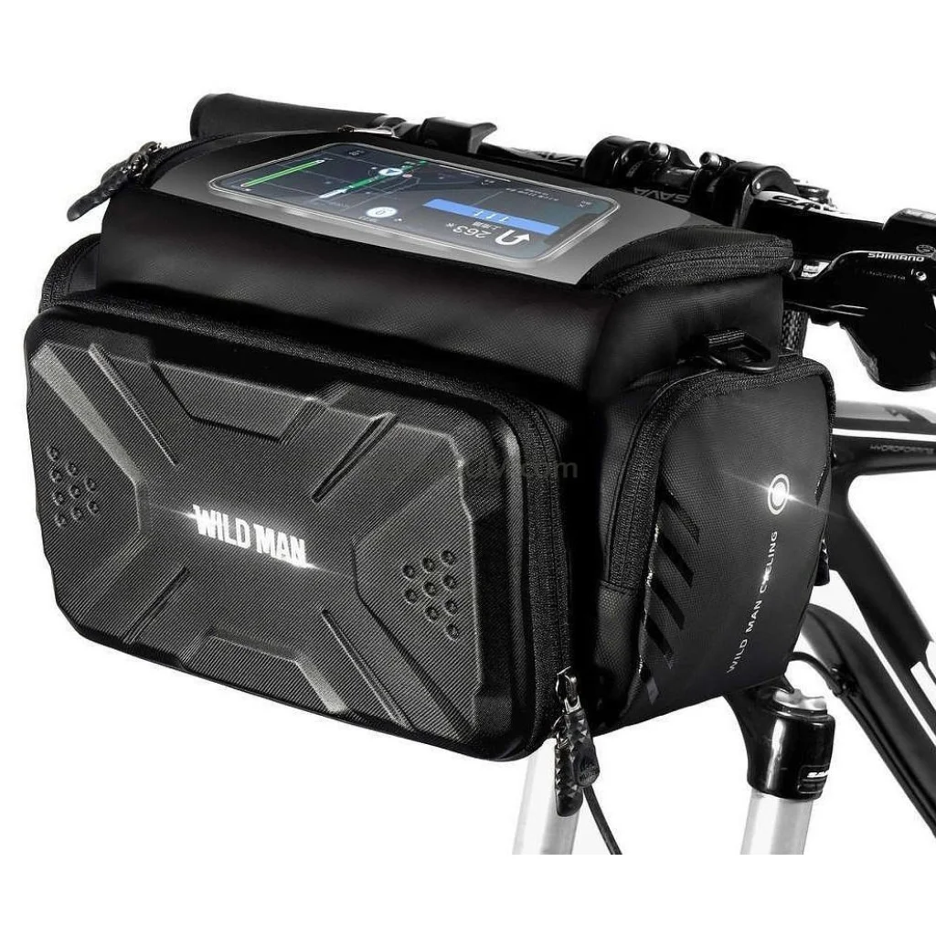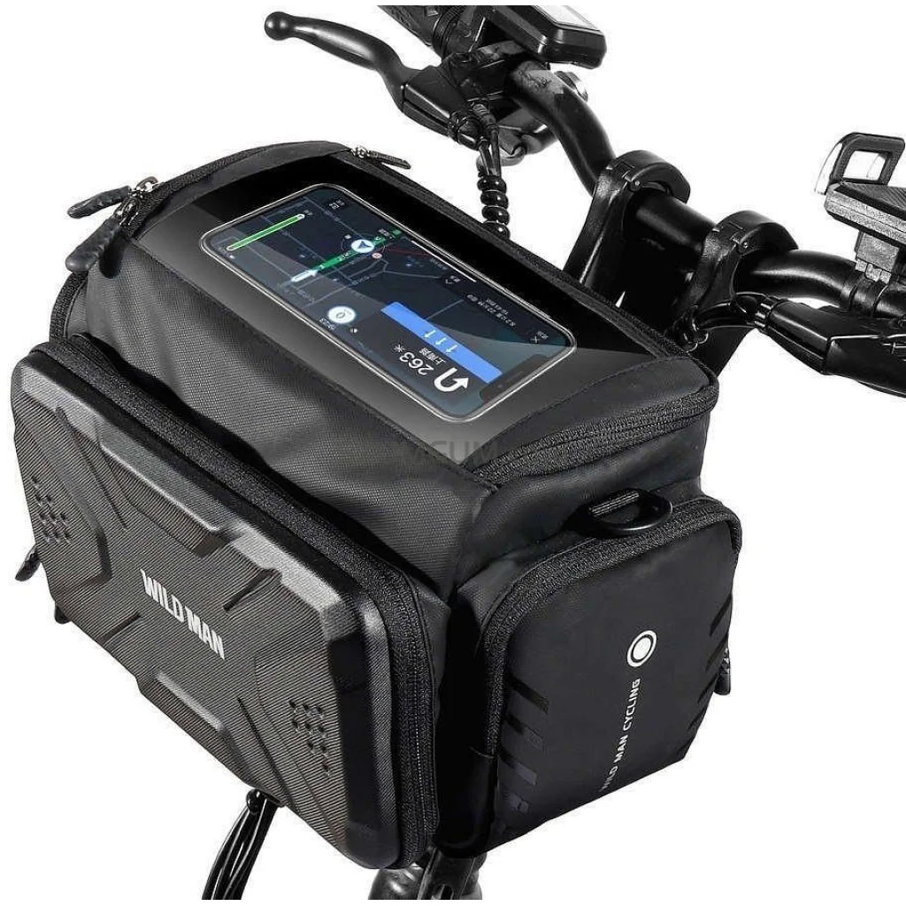 A WILDMAN 4L GS6 kormányra szerelhető kerékpáros táska egy kivételesen tágas táska, amely tökéletes hosszabb utakra és mindennapi ingázásra. A kormányra szerelve gyors hozzáférést biztosít a szükséges dolgokhoz anélkül, hogy le kellene szállni a kerékpárról. A GS6 modell akár 4 literes kapacitást kínál, amely lehetővé teszi a nagyobb kiegészítők, snackek, szerszámok, egy power bank és akár egy könnyű dzseki kényelmes tárolását. A merev szerkezet és a vízálló EVA + PU anyag hatékonyan védi a tartalmat az esőtől és a kosztól. A cipzárral záródó fő rekeszbelső elválasztókkal van felszerelve az egyszerű szervezés érdekében. A tépőzáras rögzítés lehetővé teszi a gyors és stabil rögzítést a kormányon szerszámok használata nélkül. Specifikáció:
