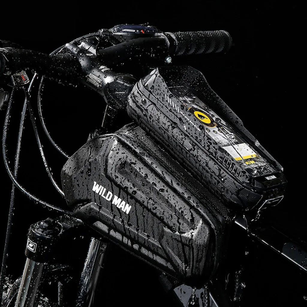 - Funkcionális vízálló kerékpárváztáska lecsatolható telefontartóval.