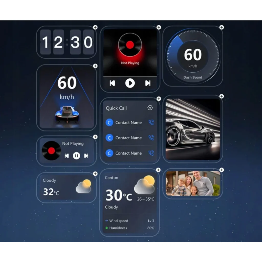 Játssz le filmeket, sorozatokat és videókat közvetlenül az autód képernyőjén a telepíthető alkalmazásoknak és a 256 GB-ig bővíthető TF kártya támogatásnak köszönhetően. Az adapter igazi mini TV-boxszá válik az autóban – ideális megoldás az utasoknak hosszú utazások során, vagy ha éppen várakoznod kell valahol. A testre szabható widgetekkel a fontos információk mindig szem előtt vannak, akár időjárás, sebesség vagy gyorshívás.