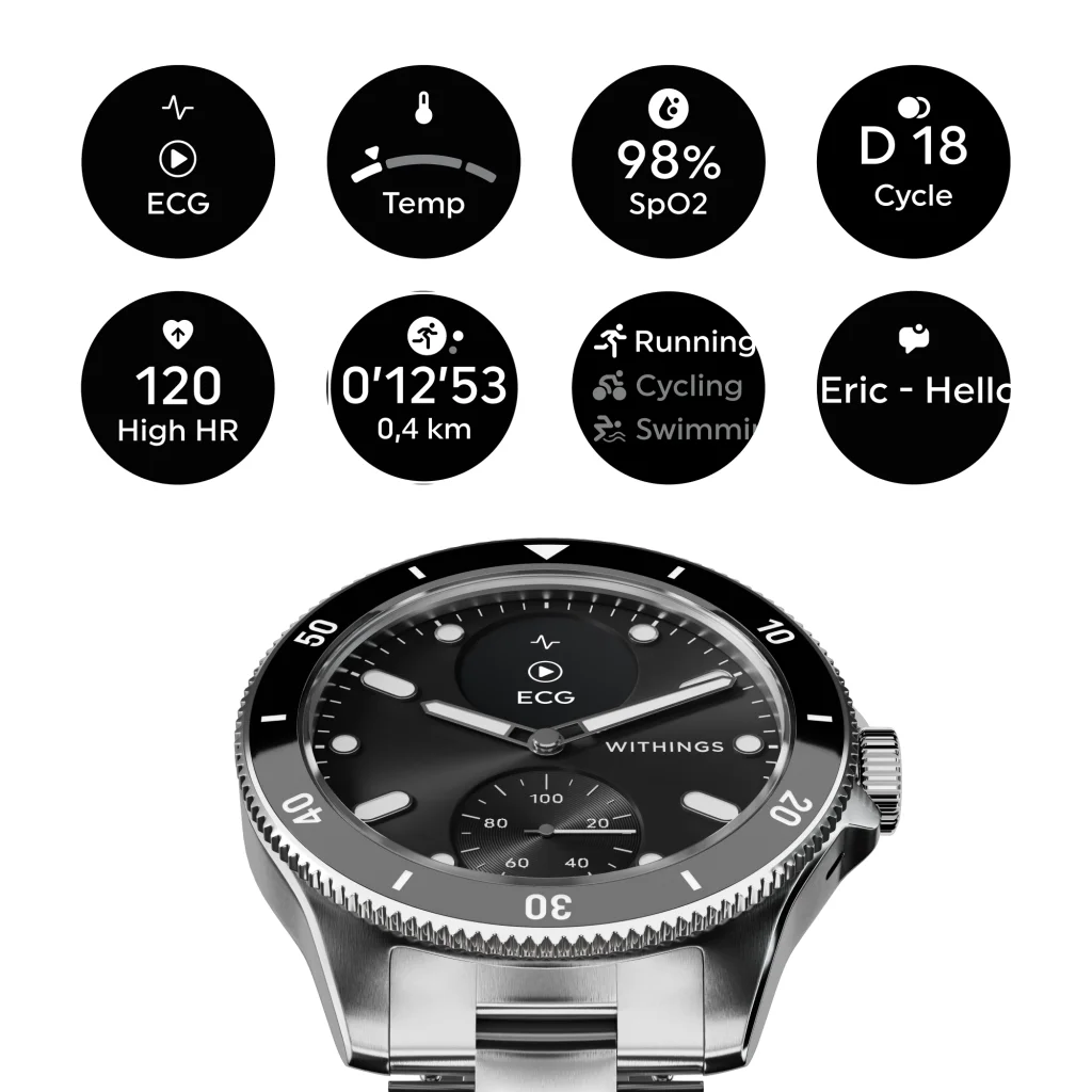 A ScanWatch Nova egy sor élvonalbeli szenzorral van felszerelve, amelyek naprakész és pontos adatokat szolgáltatnak az egészségi állapotáról: