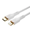 • Prémium anyagok és tartósság: Az elegáns fehér színű kábel aranyozott USB-C és Lightning csatlakozókkal rendelkezik. Az aranyozás nemcsak esztétikus megjelenést kölcsönöz, hanem korrózióálló is, biztosítva a hosszú távú, stabil és megbízható kapcsolatot. A megerősített kábelvégek és a minőségi anyaghasználat jelentősen növelik a kábel élettartamát és ellenállását a mindennapi hajlításnak és igénybevételnek.