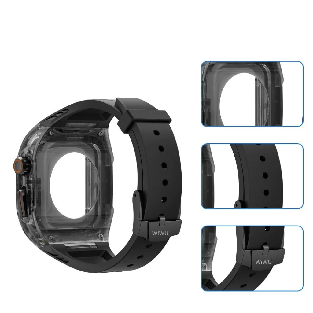 WiWU szíj fluorgumi anyagból acél csattal az Apple Watch számára. A szíj fluorgumiból készült, amely tartós és ellenáll a deformációnak. Acél csattal rendelkezik, amely megakadályozza a spontán kicsatolást. Könnyű beállítást tesz lehetővé, így ideális minden csuklóméretre, tökéletes mindennapi használatra és bármilyen sporthoz. A beépített tok védi az óra házát. Nem korlátozza a képernyőhöz és gombokhoz való hozzáférést. Műszaki adatok: