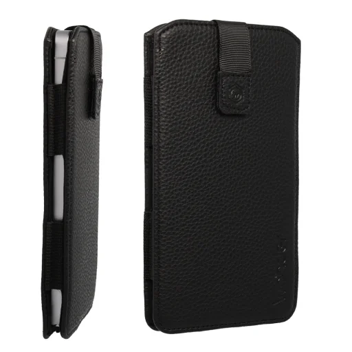 A telefon a tok tetejéről kerül be, míg a tépőzár megakadályozza a kiesést. A belső PULL-UP pánt lehetővé teszi a készülék gyors és egyszerű kivételét a tokból. A rögzítésen található dombornyomott logó elegáns megjelenést kölcsönöz az összképnek.