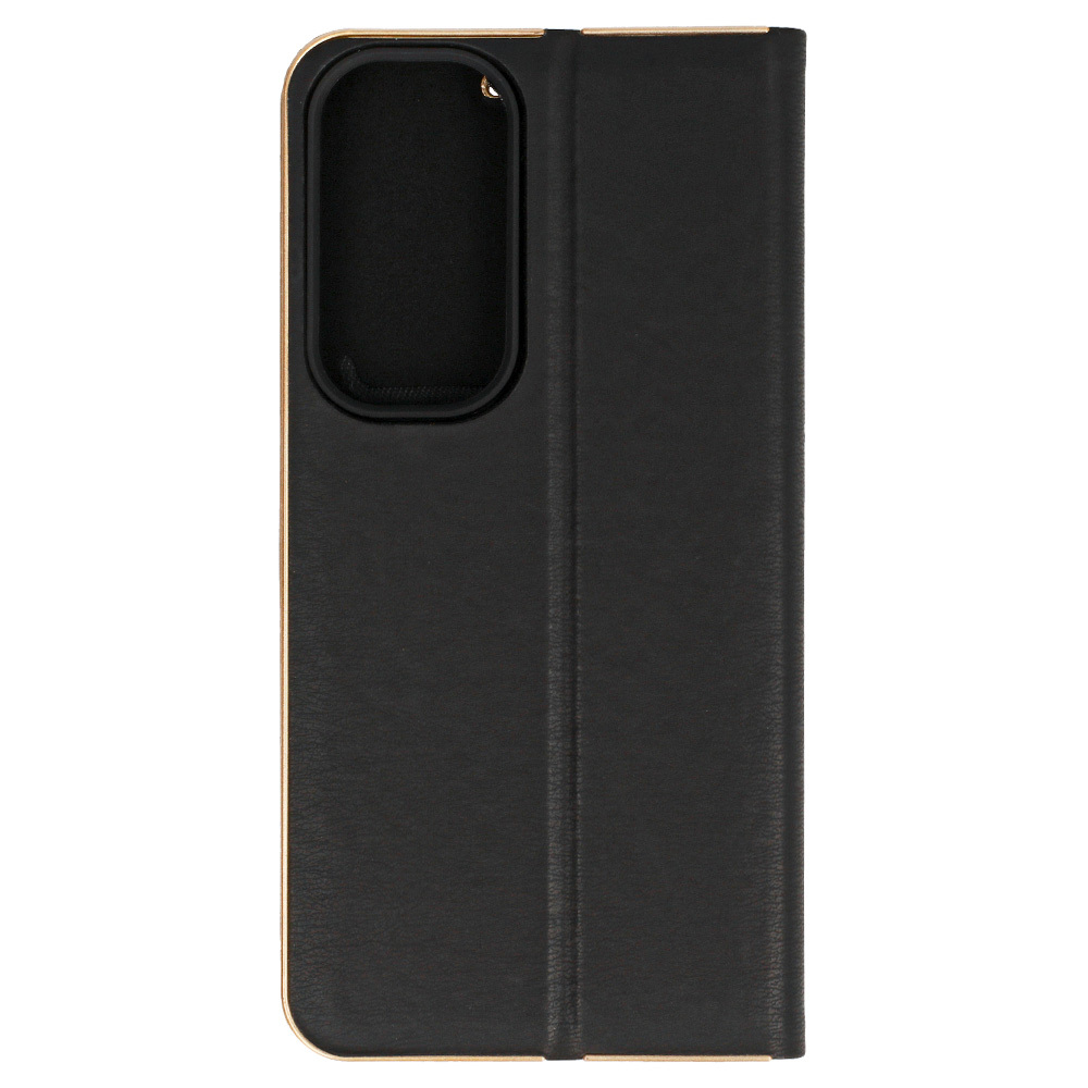 Elegancia és funkcionalitás klasszikus stílusban - Kiváló minőségű, sima öko-bőrből készült – elegáns, tartós és kellemes tapintású. - A belseje puha szövettel bélelt – védelmet nyújt a képernyő karcolódása ellen. - A tok könnyen állvánnyá hajtható – tökéletes filmnézéshez és videohívásokhoz. - A pontos kivágásoknak köszönhetően tokkal együtt is lehet beszélgetni. Arany keret, amely felkelti a figyelmet - Az exkluzív arany keret kiemeli a tok egyedi karakterét és eleganciát kölcsönöz. - A tökéletesen illeszkedő keretszín ízléses kontrasztot alkot a sima bőr felületével. Átgondolt részletek és mindennapi kényelem - A rejtett mágnesek biztonságos záródást biztosítanak felesleges kapcsok nélkül. - Beépített kártya vagy igazolvány slot – mindig kéznél van.