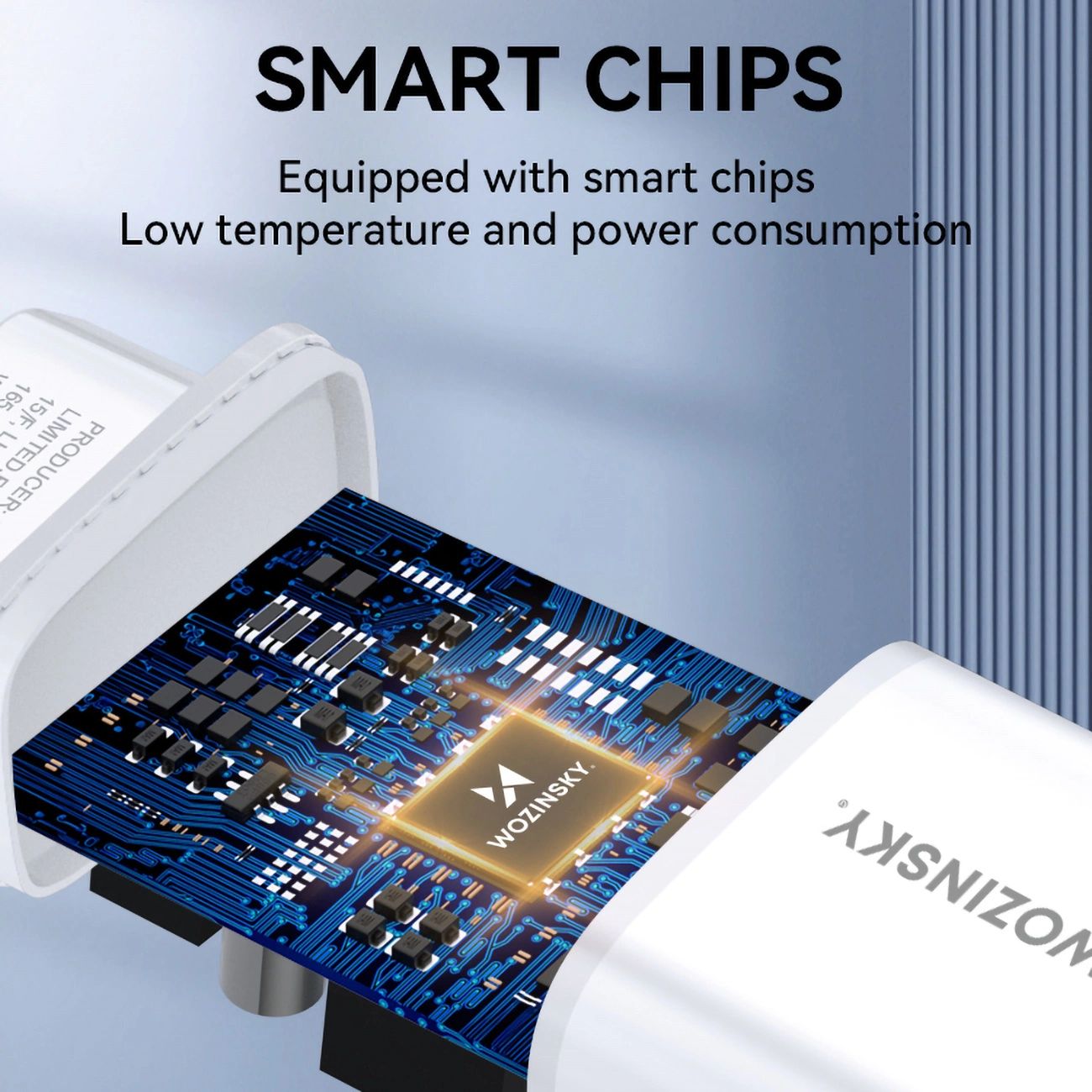 Két USB-A portjának köszönhetően a Wozinsky CUWCW hálózati töltő egyszerre két eszközt is tölthet, például egy okostelefont és egy fejhallgatót, vagy egy powerbankot és egy okoskarkötőt. Az intelligens eszközfelismerő rendszer gyors és biztonságos töltést biztosít, és megvédi az akkumulátort a túlterheléstől. A beépített biztonsági intézkedések biztosítják a biztonságos használatot. A könnyű és kompakt ház kiváló minőségű műanyagból készült, ami könnyű hordozást tesz lehetővé, és a különböző feszültségekkel való kompatibilitás miatt világszerte használható.
