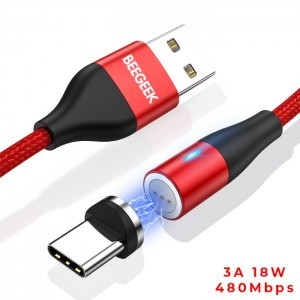 BeeGeek AM60 USB kábel 1M 3A 18W QC 3.0 gyorstöltés USB-C, Type-C mágneses fejjel, 1m piros 3 500 Ft Termék adatlap