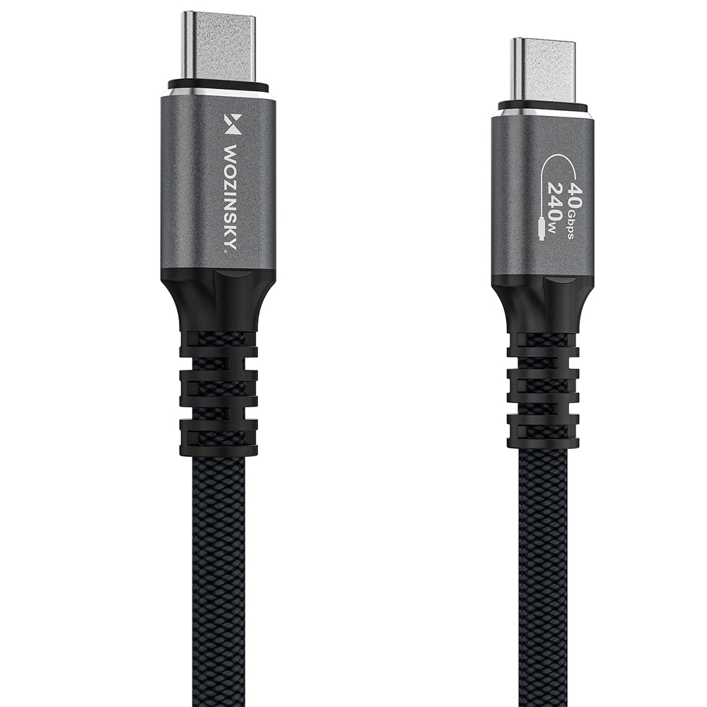 Wozinsky WPS-UY42S USB-C Thunderbolt 4 Kábel 240W 2m 4K - Fekete A Wozinsky WPS-UY42S egy prémium Thunderbolt 4 kábel, amely akár 240 W töltési támogatást és ultra-gyors adatátviteli sebességet kínál, akár 40 Gb/s-ig. Professzionális felhasználók számára tervezték, video támogatást biztosít akár 8K@60Hz felbontásig, és teljes kompatibilitást biztosít a Thunderbolt 4, Thunderbolt 3, USB4 és USB-C PD portokkal. Ideális laptopokhoz, monitorokhoz, dokkoló állomásokhoz, tabletekhez, valamint a legújabb iPad és MacBook modellekhez. Tartós anyagokból készült – alumínium ház és sűrű nejlon fonás – maximális megbízhatóságot és kopásállóságot biztosít. Specifikáció: