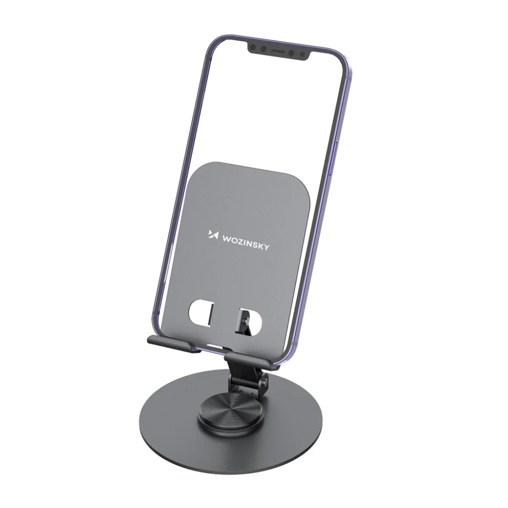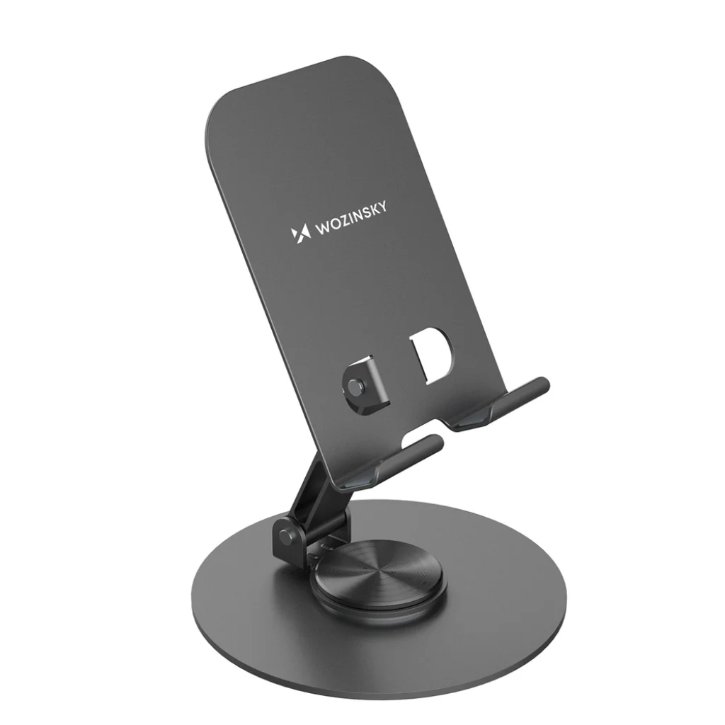 Wozinsky WPT-K95 forgatható állvány telefonhoz és tablethez - szürke A Wozinsky WPT-K95 asztali állvány egy masszív, teljesen fémből készült állvány, amely stabil alapot biztosít telefonod vagy tableted számára. A forgatható talp lehetővé teszi, hogy kényelmesen megváltoztasd az eszköz tájolását, és az állítható kar lehetővé teszi a képernyő szögének beállítását. Az összecsukható kialakítás könnyű tárolást és szállítást biztosít, és a csúszásmentes elemek megakadályozzák az eszköz csúszását. A minimalista fém dizájn kiegészíti a modern munkakörnyezetet. ~ Specifikáció:- Márka: Wozinsky