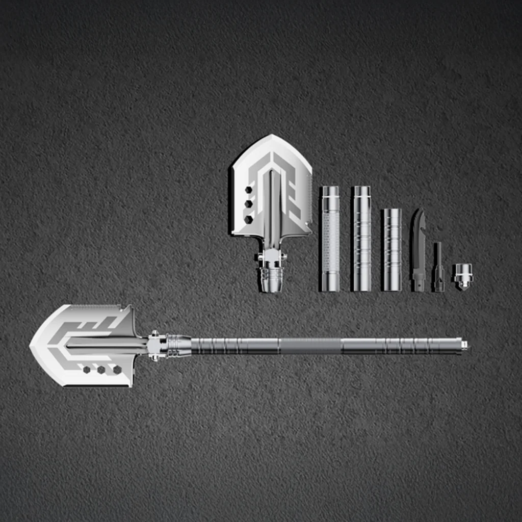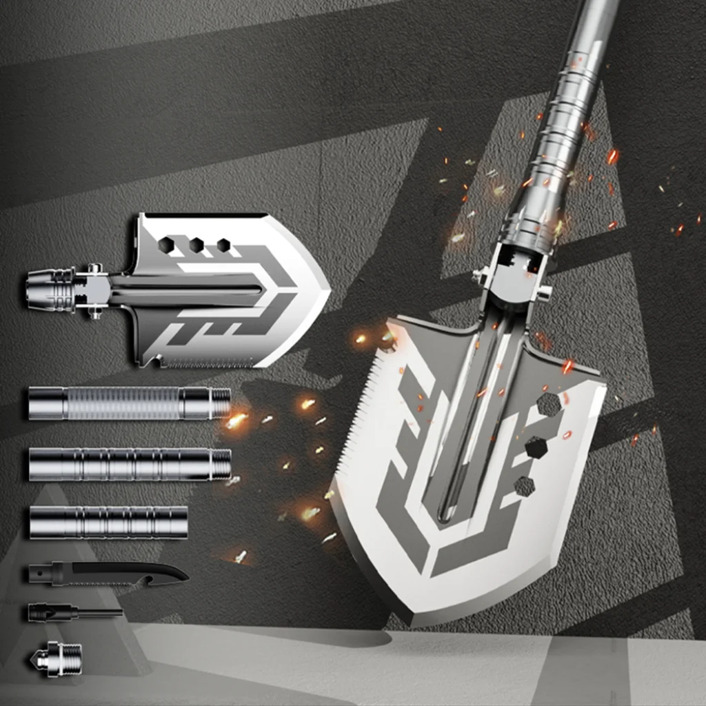 Összecsukható penge zárral: A penge fél-nyitott helyzetben való zárolásának lehetősége lehetővé teszi az ásó csákányként vagy kapaként való használatát kemény terepen végzett munkák során. Fűrész és vágó funkció: A penge lehetővé teszi ágak, gyökerek és kötelek, övek gyors vágását a terepen vagy járműben. Kés további eszközökkel: Kicsavaráskor a markolat késnyelet biztosít üvegnyitóval és kis fűrésszel tábori munkákhoz. Tűzgyújtó és jelző síp: Az integrált tartozékok megkönnyítik a tűzgyújtást és a jelenlét jelzését vészhelyzetekben. Üvegtörő és kulcsok: Csavaros üvegtörő és 13 és 16 mm-es kulcsok támogatják a mentési műveleteket és alapvető technikai munkákat.