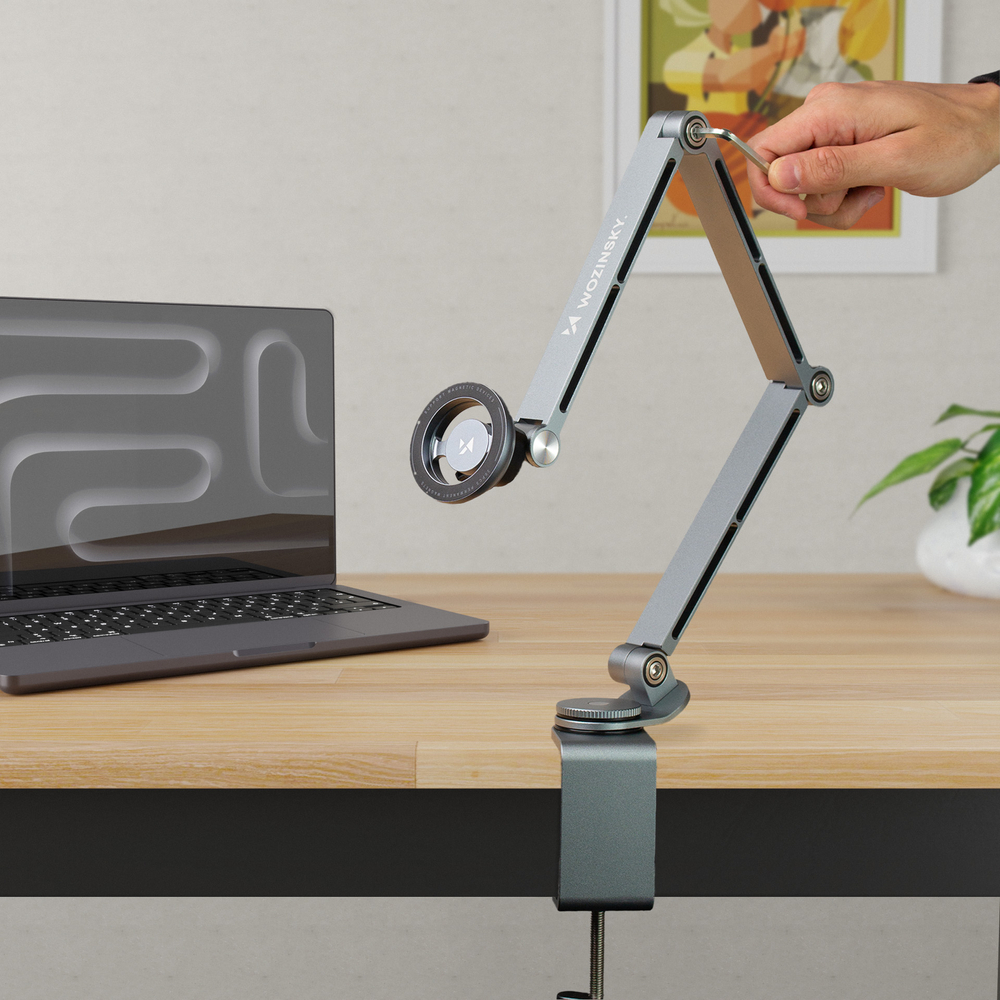 A Wozinsky WTY0YS1 egy mágneses telefon- vagy tablet tartó, amely lenyűgöz rugalmasságával, tartósságával és funkcionalitásával. A 360°-os forgatás, a 53 cm-ig állítható magasság és az összecsukható kialakítás tökéletessé teszi mind otthonra, mind munkahelyre. A stabil, három tengelyes konstrukció garantálja az eszköz biztonságát, míg a 20 erős mágnessel rendelkező mágneses rögzítőrendszer biztonságosan tartja még a nehezebb tableteket is. Praktikus megoldás bárkinek, aki értékeli a kényelmet, a helytakarékos és modern kialakítást.