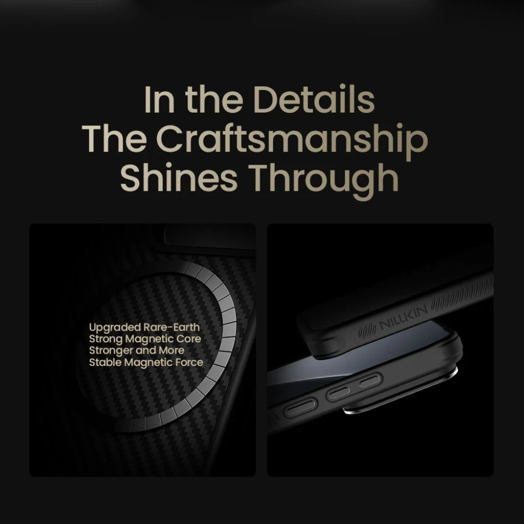 A Nillkin CarboProp aramid hátlap aramid szálból készült, amelyet az anyagiparban "fekete aranyként" ismernek.