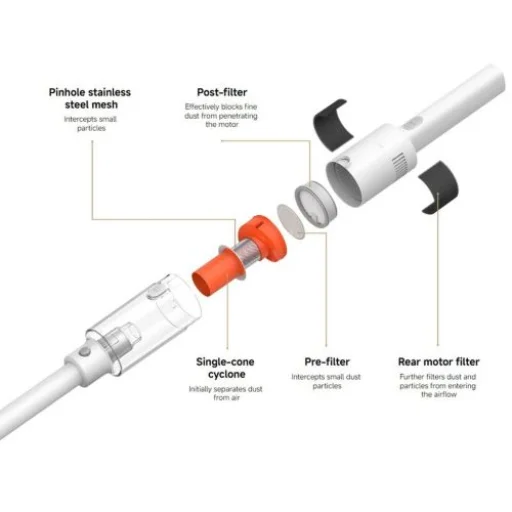 -Motorteljesítmény: 22,000 Pa szívóerő és 50 AW teljesítmény a por eltávolításához.
