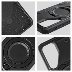 Az erősített szerkezetű és praktikus, kihúzható állvánnyal ellátott tok egy szilárd megoldás, amely tökéletesen működik a mindennapi használat során. A vezeték nélküli töltéssel való kompatibilitás és a kamera körüli emelt perem mindkét kényelmet és védelmet nyújt. Az erősített Armor típusú konstrukció hatékonyan védi az eszközt, és a két anyagból készült szerkezet tovább növeli a tartósságot. A puha TPU oldalak tökéletesen illeszkednek a telefonhoz, míg a kemény PC hátlap jobb védelmet nyújt az eszköz hátsó részének esés esetén. A tokba rejtett gyűrű stabil állványként funkcionál, lehetővé téve a telefon vízszintes elhelyezését - kiváló megoldás filmek vagy fényképek nézése során. Összecsukva a gyűrű illeszkedik a tokba, anélkül hogy zavarná a töltést vagy az eszköz használatát. A kamera körüli emelt perem további védelmi gátat biztosít a lencsék számára, lehetővé téve a telefon biztonságos lerakását anélkül, hogy a lencsék megkarcolódnának. A tok támogatja a vezeték nélküli töltést, lehetővé téve a töltést és a mágneses tartók használatát anélkül, hogy eltávolítaná a tokot.