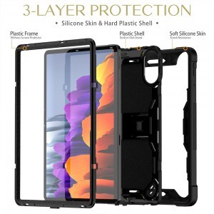 - Puha szilikon és kemény műanyag: Egy belső, ütéselnyelő, puha szilikon réteg, egy strapabíró kemény műanyag héj, valamint egy előlapi műanyag keret gondoskodik a táblagép minden oldalának biztonságáról.