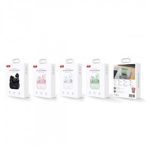 - Ergonomikus és elegáns design: Az XO X40 fülhallgatókat úgy tervezték, hogy kényelmesen és stabilan illeszkedjenek a fülbe, még hosszú viselés során is. A letisztult fehér szín modern és elegáns megjelenést kölcsönöz, kiegészítve a minimalista töltőtokkal. (A termékcsalád emellett fekete, rózsaszín és zöld színekben is elérhető, így biztosan megtalálod a stílusodhoz illőt).
