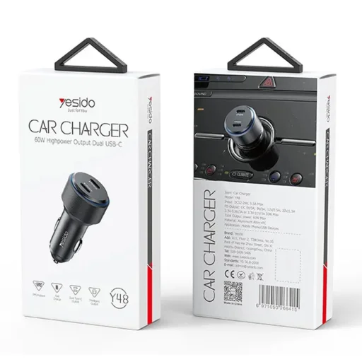 Fedezze fel a kompromisszumok nélküli autós töltést a Yesido Y48 autós töltővel! Ez a prémium minőségű, kompakt eszköz nem csupán gyors, de biztonságos energiaellátást is biztosít digitális eszközeinek, bárhová is vezesse útja. A két nagy teljesítményű Type-C porttal, intelligens védelemmel és univerzális kompatibilitással a Yesido Y48 az ideális társ minden utazáshoz.