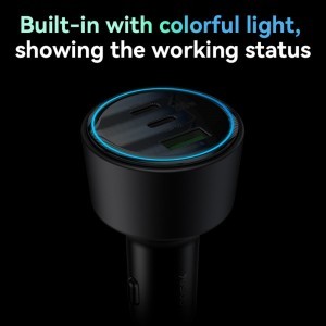 • Beépített színes LED világítás: Az elegáns, színes LED fény nemcsak stílusos kiegészítője az autó belső terének, hanem azonnal jelzi a töltő működési állapotát is, így mindig tudhatja, hogy eszközei töltés alatt állnak-e.