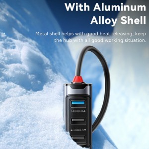 A Yesido HB21 kiemelkedik a piacon egyedülálló, dual-ended USB és Type-C bemeneti kábelével. Ez azt jelenti, hogy könnyedén csatlakoztatható bármilyen USB-A vagy USB-C porttal rendelkező laptophoz vagy eszközhöz, maximális kompatibilitást biztosítva. Az egyetlen bemeneti portból öt hasznos kimeneti portot varázsol: