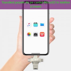 Ez a multifunkciós kártyaolvasó USB 3.0 Super Fast Data Transmission sebességgel dolgozik, így pillanatok alatt áthelyezheted adataidat. Közvetlenül átviheted a fotókat a MicroSD kártyáról a telefonodra és fordítva ("Transferă pozele de pe cardul MicroSD în telefon și invers"). Tökéletes megoldás a telefon tárhelyének felszabadítására, biztonsági mentések készítésére, vagy a kedvenc médiafájljaid azonnali elérésére. Nem csupán képeket, hanem videókat, dokumentumokat és zenéket is könnyedén kezel:
