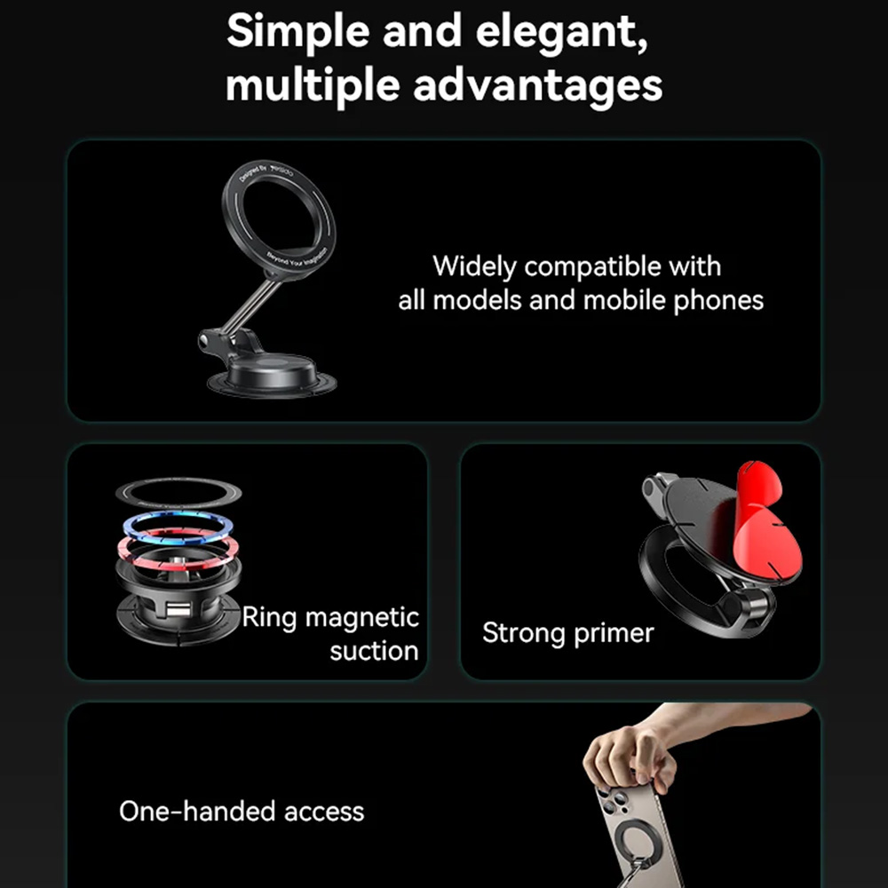 - Egykezes hozzáférés: Gyorsan és egyszerűen helyezheti fel vagy veheti le telefonját a tartóról.