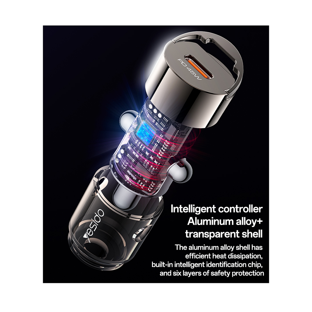 - Tökéletes integráció: Felejtsd el a nagy, kiálló töltőket! A Yesido Y67 olyan kicsi, mint egy hüvelykujj, és teljesen belesimul az autó szivargyújtó aljzatába, megőrizve az utastér rendezettségét.